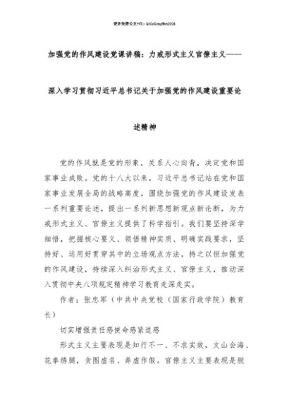 【七哥公文】2025年:【七哥公文】加强党的作风建设党课讲稿:力戒形式主义官僚主义——深入学习贯彻习近平总书记关于加强党的作风建设重要论述精神+更多免费公文+VX:QiGeGongWen2024+更多免费公文+VX:QiGeGongWen2024
