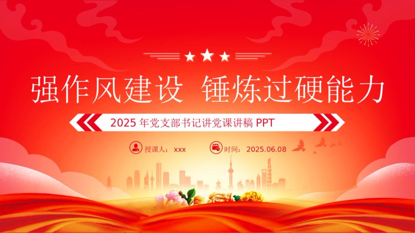 【七哥公文】2025年:【七哥公文】党课PPT课件:2025强作风建设锤炼过硬能力党支部书记讲党课+更多免费公文+VX:QiGeGongWen2024+更多免费公文+VX:QiGeGongWen2024