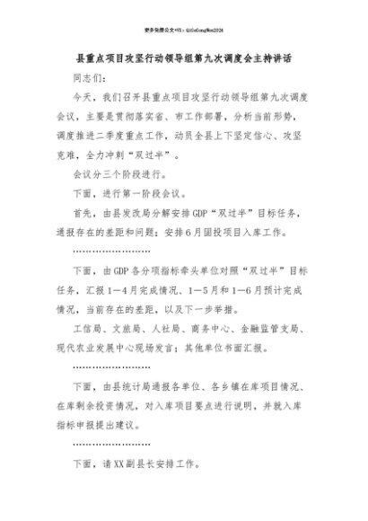 【七哥公文】2025年:【七哥公文】县重点项目攻坚行动领导组第九次调度会主持讲话+更多免费公文+VX:QiGeGongWen2024+更多免费公文+VX:QiGeGongWen2024