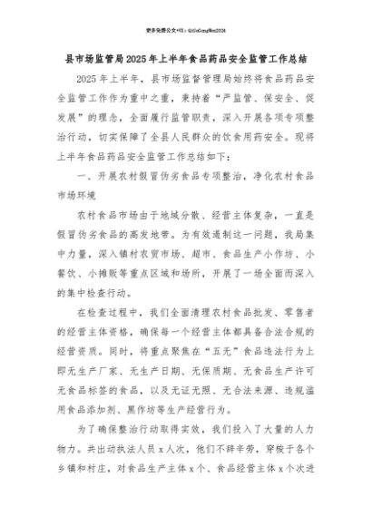 【七哥公文】2025年:【七哥公文】县市场监管局2025年上半年食品药品安全监管工作总结+更多免费公文+VX:QiGeGongWen2024+更多免费公文+VX:QiGeGongWen2024