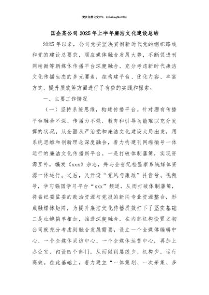 【七哥公文】2025年:【七哥公文】国企某公司2025年上半年廉洁文化建设总结+更多免费公文+VX:QiGeGongWen2024+更多免费公文+VX:QiGeGongWen2024