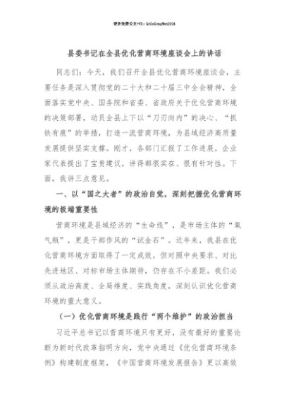 【七哥公文】2025年:【七哥公文】县委书记在全县优化营商环境座谈会上的讲话+更多免费公文+VX:QiGeGongWen2024+更多免费公文+VX:QiGeGongWen2024