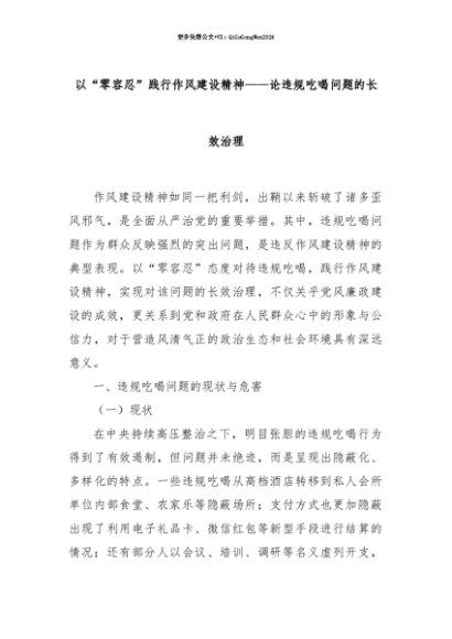 【七哥公文】2025年:【七哥公文】以“零容忍”践行作风建设精神——论违规吃喝问题的长效治理+更多免费公文+VX:QiGeGongWen2024+更多免费公文+VX:QiGeGongWen2024
