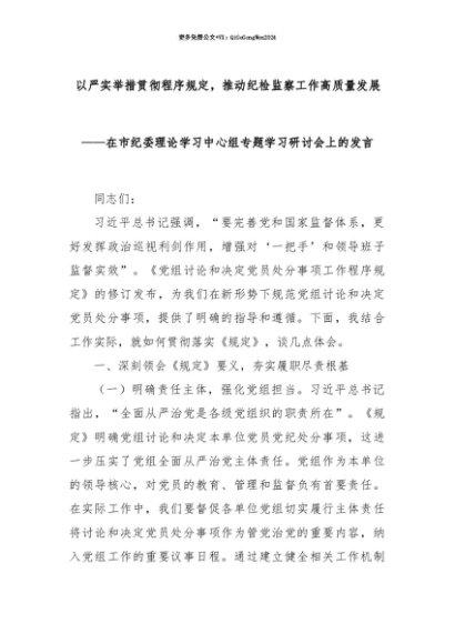 【七哥公文】2025年:【七哥公文】以严实举措贯彻程序规定,推动纪检监察工作高质量发展——在市纪委理论学习中心组专题学习研讨会上的发言+更多免费公文+VX:QiGeGongWen2024+更多免费公文+VX:QiGeGongWen2024