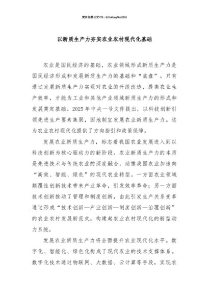 【七哥公文】2025年:【七哥公文】以新质生产力夯实农业农村现代化基础+更多免费公文+VX:QiGeGongWen2024+更多免费公文+VX:QiGeGongWen2024