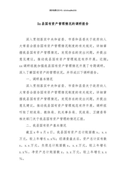 【七哥公文】2025年:【七哥公文】Xx县国有资产管理情况的调研报告+更多免费公文+VX:QiGeGongWen2024+更多免费公文+VX:QiGeGongWen2024