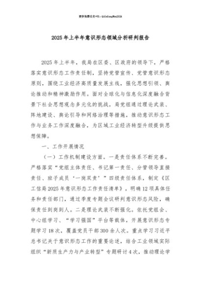 【七哥公文】2025年:【七哥公文】2025年上半年意识形态领域分析研判报告+更多免费公文+VX:QiGeGongWen2024+更多免费公文+VX:QiGeGongWen2024