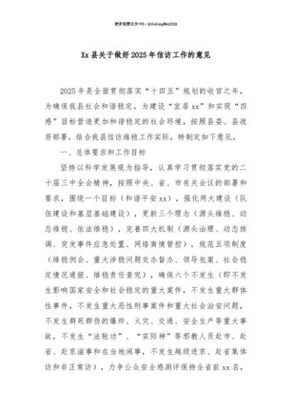 【七哥公文】2025年:【七哥公文】Xx县关于做好2025年信访工作的意见+更多免费公文+VX:QiGeGongWen2024+更多免费公文+VX:QiGeGongWen2024