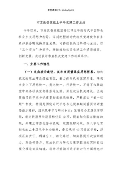 【七哥公文】2025年:【七哥公文】市发改委党组上半年党建工作总结+更多免费公文+VX:QiGeGongWen2024+更多免费公文+VX:QiGeGongWen2024