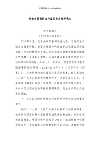 【七哥公文】2025年:【七哥公文】把教育强国的宏伟蓝图变为美好现实+更多免费公文+VX:QiGeGongWen2024+更多免费公文+VX:QiGeGongWen2024