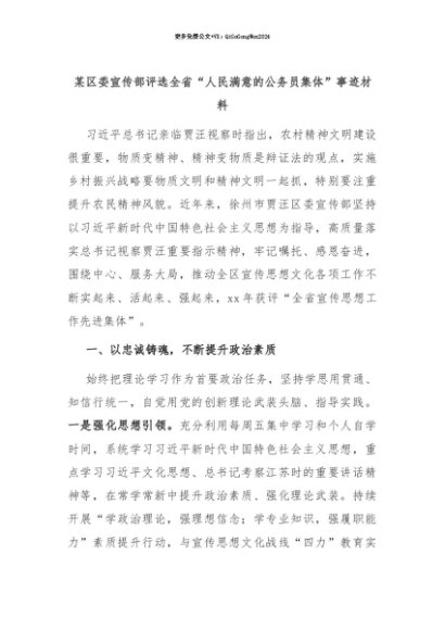 【七哥公文】2025年:【七哥公文】某区委宣传部评选全省“人民满意的公务员集体”事迹材料+更多免费公文+VX:QiGeGongWen2024+更多免费公文+VX:QiGeGongWen2024
