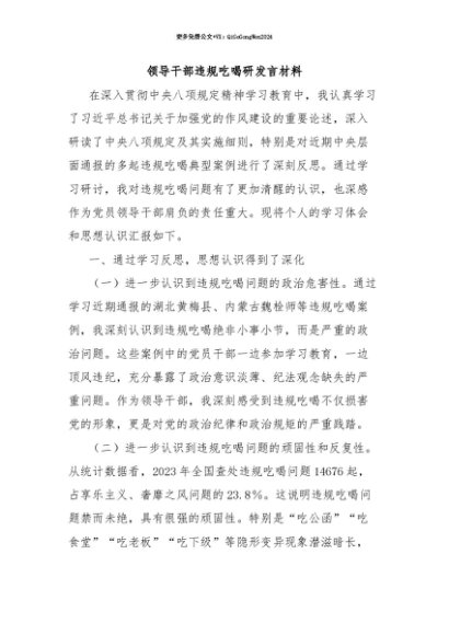 【七哥公文】2025年:【七哥公文】领导干部违规吃喝研发言材料+更多免费公文+VX:QiGeGongWen2024+更多免费公文+VX:QiGeGongWen2024