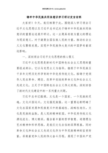 【七哥公文】2025年:【七哥公文】铸牢中华民族共同体意识学习研讨发言材料+更多免费公文+VX:QiGeGongWen2024+更多免费公文+VX:QiGeGongWen2024
