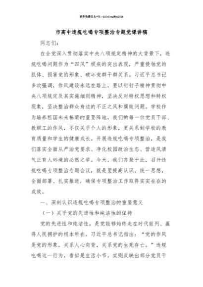【七哥公文】2025年:【七哥公文】市高中违规吃喝专项整治专题党课讲稿+更多免费公文+VX:QiGeGongWen2024+更多免费公文+VX:QiGeGongWen2024