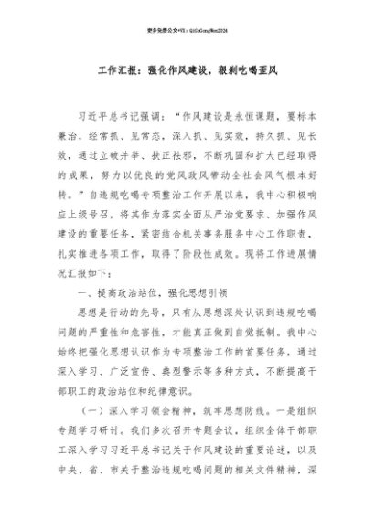 【七哥公文】2025年:【七哥公文】工作汇报:强化作风建设,狠刹吃喝歪风+更多免费公文+VX:QiGeGongWen2024+更多免费公文+VX:QiGeGongWen2024
