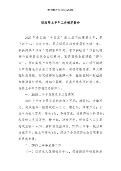 【七哥公文】2025年:【七哥公文】财政局上半年工作情况报告+更多免费公文+VX:QiGeGongWen2024+更多免费公文+VX:QiGeGongWen2024