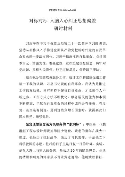 【七哥公文】2025年:【七哥公文】对标对标 入脑入心纠正思想偏差 研讨材料(1)+更多免费公文+VX:QiGeGongWen2024+更多免费公文+VX:QiGeGongWen2024
