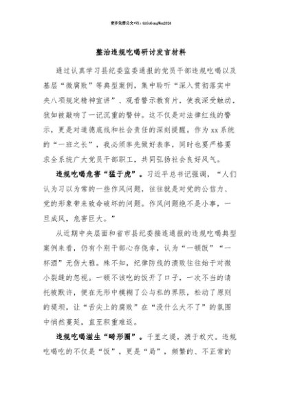 【七哥公文】2025年:【七哥公文】整治违规吃喝研讨发言材料+更多免费公文+VX:QiGeGongWen2024+更多免费公文+VX:QiGeGongWen2024