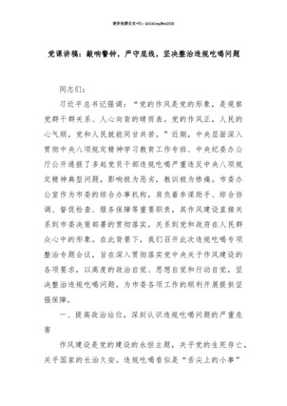 【七哥公文】2025年:【七哥公文】党课讲稿:敲响警钟,严守底线,坚决整治违规吃喝问题+更多免费公文+VX:QiGeGongWen2024+更多免费公文+VX:QiGeGongWen2024