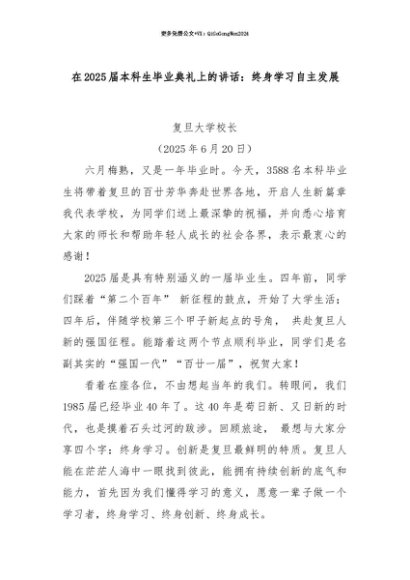 【七哥公文】2025年:【七哥公文】在2025届本科生毕业典礼上的讲话:终身学习自主发展+更多免费公文+VX:QiGeGongWen2024+更多免费公文+VX:QiGeGongWen2024