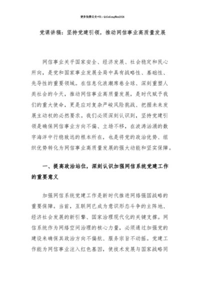【七哥公文】2025年:【七哥公文】党课讲稿:坚持党建引领,推动网信事业高质量发展+更多免费公文+VX:QiGeGongWen2024+更多免费公文+VX:QiGeGongWen2024