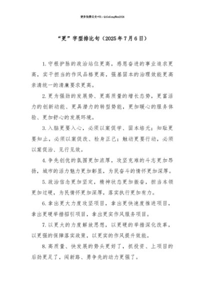 【七哥公文】2025年:【七哥公文】“更”字型排比句(2025年7月6日)+更多免费公文+VX:QiGeGongWen2024+更多免费公文+VX:QiGeGongWen2024