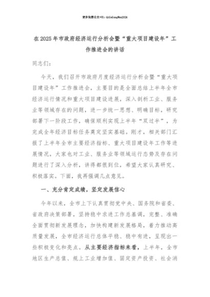 【七哥公文】2025年:【七哥公文】在2025年市政府经济运行分析会暨“重大项目建设年”工作推进会的讲话+更多免费公文+VX:QiGeGongWen2024+更多免费公文+VX:QiGeGongWen2024