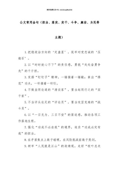 【七哥公文】2025年:【七哥公文】公文常用金句(担当、落实、实干、斗争、廉洁、为民等主题)+更多免费公文+VX:QiGeGongWen2024+更多免费公文+VX:QiGeGongWen2024