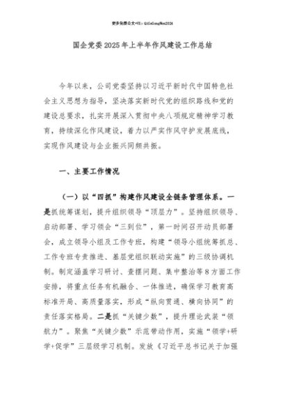 【七哥公文】2025年:【七哥公文】国企党委2025年上半年作风建设工作总结+更多免费公文+VX:QiGeGongWen2024+更多免费公文+VX:QiGeGongWen2024
