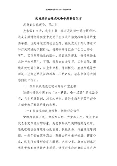 【七哥公文】2025年:【七哥公文】党员座谈会违规吃喝专题研讨发言+更多免费公文+VX:QiGeGongWen2024+更多免费公文+VX:QiGeGongWen2024