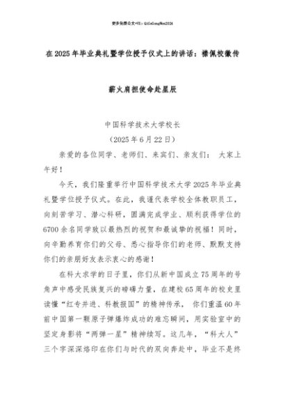 【七哥公文】2025年:【七哥公文】在2025年毕业典礼暨学位授予仪式上的讲话:襟佩校徽传薪火肩担使命赴星辰+更多免费公文+VX:QiGeGongWen2024+更多免费公文+VX:QiGeGongWen2024