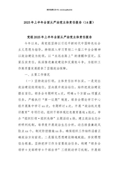 【七哥公文】2025年:【七哥公文】(14篇)2025年上半年全面从严治党主体责任报告+更多免费公文+VX:QiGeGongWen2024+更多免费公文+VX:QiGeGongWen2024