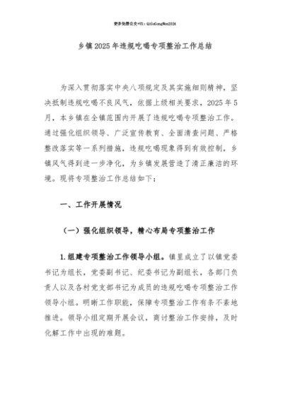 【七哥公文】2025年:【七哥公文】乡镇2025年违规吃喝专项整治工作总结+更多免费公文+VX:QiGeGongWen2024+更多免费公文+VX:QiGeGongWen2024
