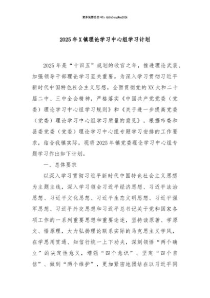 【七哥公文】2025年:【七哥公文】2025年X镇理论学习中心组学习计划 +更多免费公文+VX:QiGeGongWen2024+更多免费公文+VX:QiGeGongWen2024
