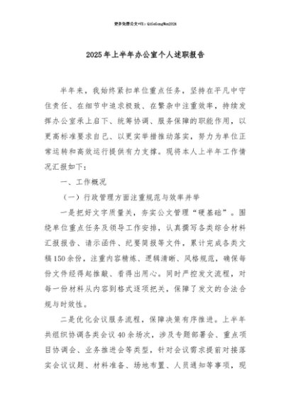 【七哥公文】2025年:【七哥公文】2025年上半年办公室个人述职报告+更多免费公文+VX:QiGeGongWen2024+更多免费公文+VX:QiGeGongWen2024