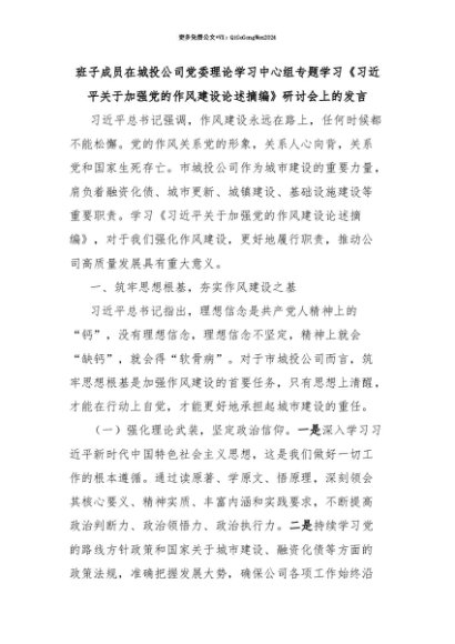 【七哥公文】2025年:【七哥公文】班子成员在城投公司党委理论学习中心组专题学习《习近平关于加强党的作风建设论述摘编》研讨会上的发言+更多免费公文+VX:QiGeGongWen2024+更多免费公文+VX:QiGeGongWen2024