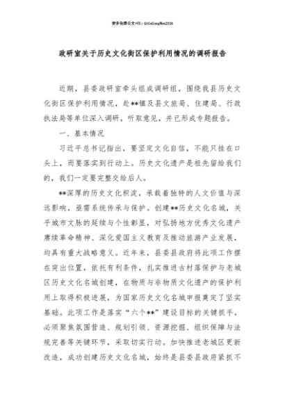 【七哥公文】2025年:【七哥公文】政研室关于历史文化街区保护利用情况的调研报告+更多免费公文+VX:QiGeGongWen2024+更多免费公文+VX:QiGeGongWen2024