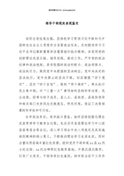【七哥公文】2025年:【七哥公文】领导干部现实表现鉴定+更多免费公文+VX:QiGeGongWen2024+更多免费公文+VX:QiGeGongWen2024