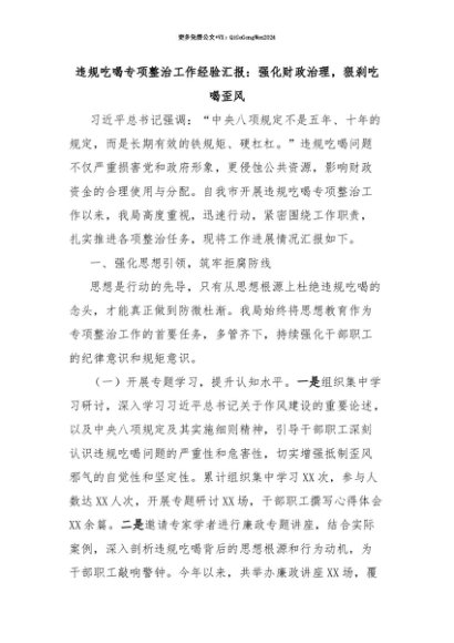 【七哥公文】2025年:【七哥公文】违规吃喝专项整治工作经验汇报:强化财政治理,狠刹吃喝歪风+更多免费公文+VX:QiGeGongWen2024+更多免费公文+VX:QiGeGongWen2024
