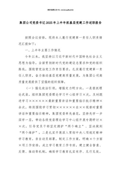 【七哥公文】2025年:【七哥公文】集团公司党委书记2025年上半年抓基层党建工作述职报告+更多免费公文+VX:QiGeGongWen2024+更多免费公文+VX:QiGeGongWen2024