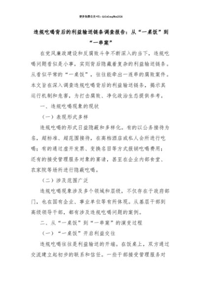 【七哥公文】2025年:【七哥公文】违规吃喝背后的利益输送链条调查报告:从“一桌饭”到“一串案”+更多免费公文+VX:QiGeGongWen2024+更多免费公文+VX:QiGeGongWen2024