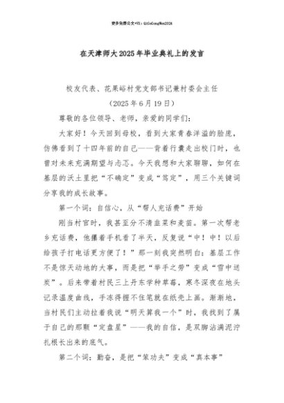 【七哥公文】2025年:【七哥公文】在天津师大2025年毕业典礼上的发言+更多免费公文+VX:QiGeGongWen2024+更多免费公文+VX:QiGeGongWen2024