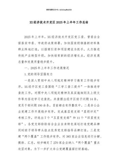 【七哥公文】2025年:【七哥公文】XX经济技术开发区2025年上半年工作总结+更多免费公文+VX:QiGeGongWen2024+更多免费公文+VX:QiGeGongWen2024