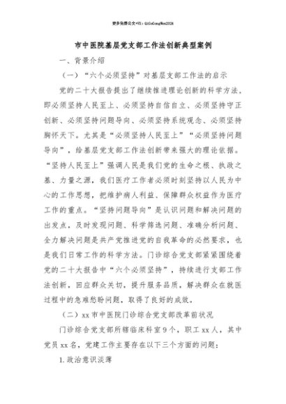 【七哥公文】2025年:【七哥公文】市中医院基层党支部工作法创新典型案例+更多免费公文+VX:QiGeGongWen2024+更多免费公文+VX:QiGeGongWen2024