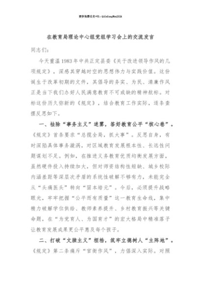 【七哥公文】2025年:【七哥公文】在教育局理论中心组党组学习会上的交流发言+更多免费公文+VX:QiGeGongWen2024+更多免费公文+VX:QiGeGongWen2024