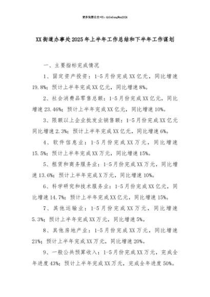 【七哥公文】2025年:【七哥公文】XX街道办事处2025年上半年工作总结和下半年工作谋划+更多免费公文+VX:QiGeGongWen2024+更多免费公文+VX:QiGeGongWen2024