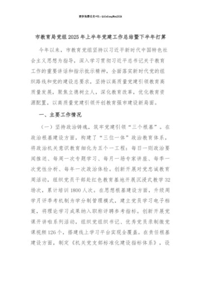 【七哥公文】2025年:【七哥公文】市教育局党组2025年上半年党建工作总结暨下半年打算+更多免费公文+VX:QiGeGongWen2024+更多免费公文+VX:QiGeGongWen2024