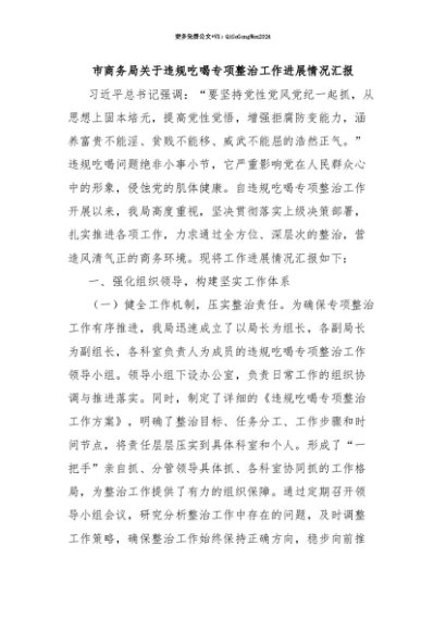 【七哥公文】2025年:【七哥公文】市商务局关于违规吃喝专项整治工作进展情况汇报+更多免费公文+VX:QiGeGongWen2024+更多免费公文+VX:QiGeGongWen2024