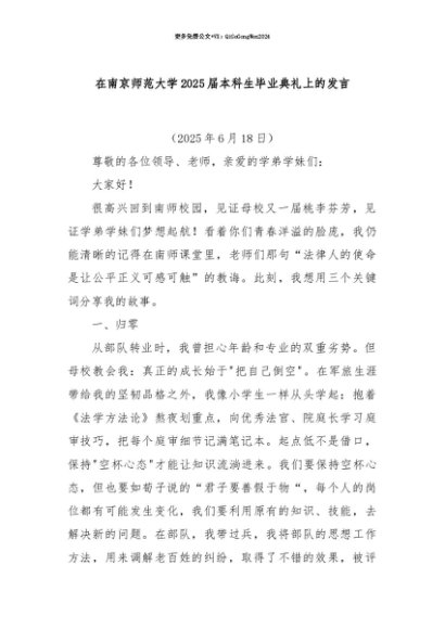 【七哥公文】2025年:【七哥公文】在南京师范大学2025届本科生毕业典礼上的发言+更多免费公文+VX:QiGeGongWen2024+更多免费公文+VX:QiGeGongWen2024