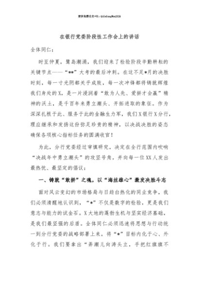 【七哥公文】2025年:【七哥公文】在银行党委阶段性工作会上的讲话+更多免费公文+VX:QiGeGongWen2024+更多免费公文+VX:QiGeGongWen2024